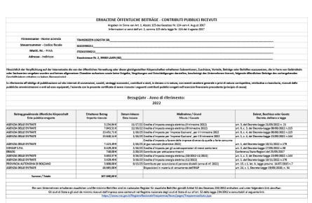 Veröffentlichung im Sinne des Gesetzes Nr. 124 vom 04.08.2017: